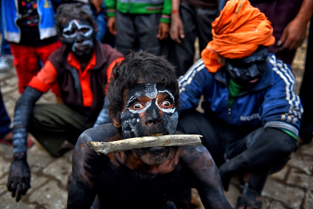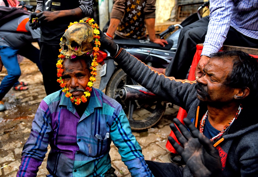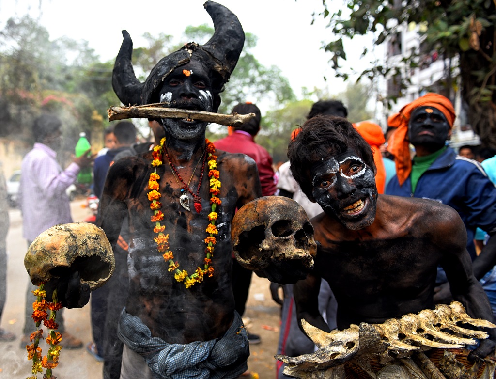 Photos from the Procession of Shivji ki Baraat shows how people transform themselves into different mythological representation & aghoris seen walked on the street with Skulls during the Maha Shivaratri festival celebration at Uttaroradsh , India .