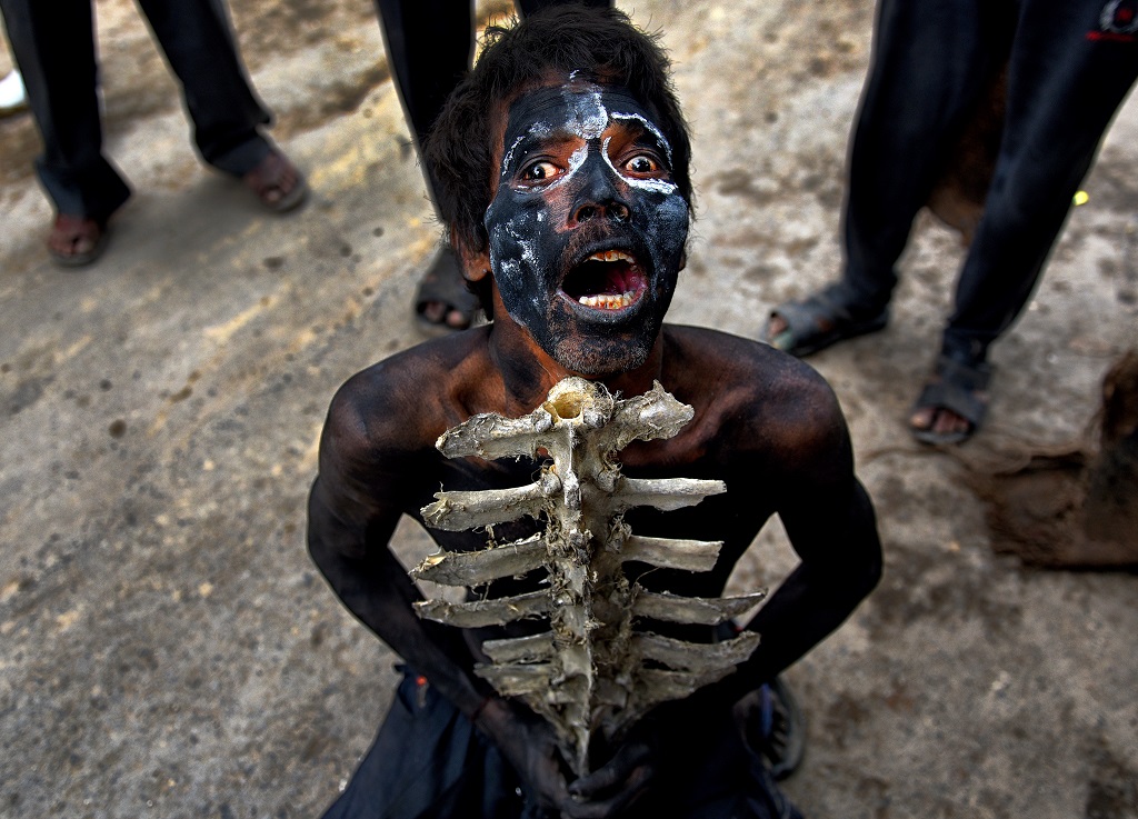 Photos from the Procession of Shivji ki Baraat shows how people transform themselves into different mythological representation & aghoris seen walked on the street with Skulls during the Maha Shivaratri festival celebration at Uttaroradsh , India .